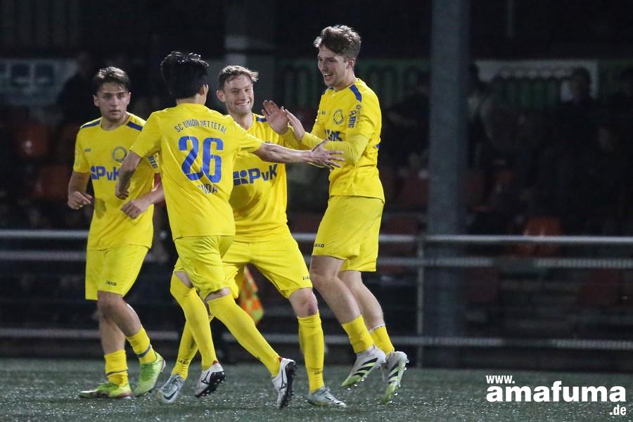 Jubel nach dem 1:1 durch Mats Platen. Foto: Heiko van der Velden Für den SC Union Nettetal gab es am Freitagabend unter Flutlich ein 1:1-Unentschieden
